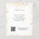 Un mariage moderne, élégant détails / programme / chronologie. Un arrière - plan blanc décoré de parties scintillant en faux or brille. Personnalisez et ajoutez vos noms et les détails du mariage. Lettres de couleur noire. Texte des deux côtés. Ajoutez l'URL de votre site Web mariage au code QR. 1 feuille = 1 programme imprimé de bord en bord.