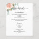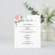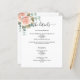 Un mariage moderne, élégant détails / programme / chronologie. Un arrière - plan blanc, décoré d'un or rose, d'une rose aux eaux vives et d'une végétation d'eucalyptus. Personnalisez et ajoutez vos noms et les détails du mariage. Lettres de couleur noire. Texte des deux côtés. Ajoutez l'URL de votre site Web mariage au code QR. 1 feuille = 1 programme imprimé de bord en bord.