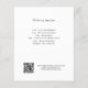 Un mariage moderne, élégant détails / programme / chronologie. Un arrière - plan blanc. Personnalisez et ajoutez vos noms et les détails du mariage. Lettres de couleur noire. Texte des deux côtés. Ajoutez l'URL de votre site Web mariage au code QR. 1 feuille = 1 programme imprimé de bord en bord.