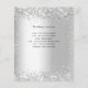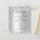 Un mariage moderne, élégant détails / programme / chronologie. Arrière - plan à l'aspect argent faux décoré de parties scintillant faux argent, scintille. Personnalisez et ajoutez vos noms et les détails du mariage. Lettres de couleur noire. Texte des deux côtés. 1 feuille = 1 programme imprimé de bord en bord.