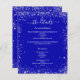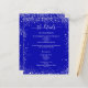 Un programme de mariage moderne et élégant / détails / chronologie. Un arrière - plan de couleur bleue royale décoré de parties scintillant faux argentées brille. Personnalisez et ajoutez vos noms et les détails du mariage. Lettres de couleur blanche. Texte des deux côtés. 1 feuille = 1 programme imprimé de bord en bord.