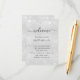 Un programme de mariage moderne et élégant, chronologie. Arrière - plan métallique argenté Faux décoré de la poussière de parties scintillant faux argent. Personnalisez et ajoutez vos noms et les détails du mariage. Lettres de couleur noire. Si vous avez plus de texte, il est possible de réduire l'espace de ligne.