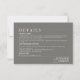 Gardez votre papeterie mariage élégante et simple avec cette invitation Minimal Détails Mariage. Doté d'une disposition propre et moderne avec une typographie intemporelle, cette carte est parfaite pour partager toutes les informations importantes sur votre grand jour. Son design minimaliste garantit que vos détails restent au centre de l'attention tout en complétant tout style mariage. Idéal pour les couples qui apprécient l'élégance sobre et l'esthétique contemporaine.