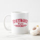 Symbole rouge "Detroit Builds Hockey" sur une tasse blanche. Fait un grand cadeau pour le café qui boit le ventilateur de hockey Detroit.