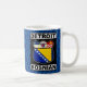 Detroit Mug Bosniaque Américaine. Bouclier de conception de style routier classique, avec le texte Detroit Bosnien, et les drapeaux de la ville de Detroit et de la Bosnie-Herzégovine