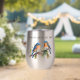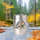 Une belle image d'oiseau colorée à l'avant et à l'arrière de ce caisson en acier inoxydable. Le texte dit "Le plus grand papa du monde" aussi sur le dos et devant