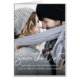 Cette carte Save the Date moderne commence par la photo de votre couple. Save the Date est écrit dans une grande calligraphie blanche stylisée. Deux lignes de texte ci-dessous vous permettent de personnaliser votre message. Une superposition spéciale garantit que votre texte blanc apparaîtra peu importe votre photo. À l'intérieur de la carte il y a une autre photo et un message plus long pour vous de personnaliser.
