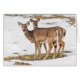 Deux cerfs donnent au photographe un regard attentif de leur place herbeuse dans un champ de dégel printanier.