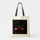 Two Cherries - Deux cerises douces (prunus avium regina) en vert vif et violet photographiées contre un arrière - plan noir clair. © Alan Harman Photography 2013. Tous droits réservés. www.alanharmanphotography.com sac fourre-tout budgétaire 20518