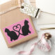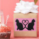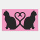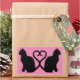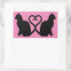 Une silhouette noire et blanche de deux chats. Leurs queues à la forme identique se rassemblent pour former un coeur.