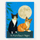 Journal dans une illustration d'un chat tuxedo noir et blanc et d'un tabby orange, assis sous un ciel étoilé avec une pleine lune. Entourés de verdure silhouette, ils créent une atmosphère nocturne sereine. Le texte ludique "A Purrfect Night" ajoute de la fantaisie à l'illustration.