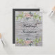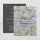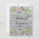 Cette conception de mariage présente des bordures florales délicates sur un fond rustique de planche de grange de campagne. Le design romantique est parfait pour un mariage de printemps ou d'été et l'utilisation subtile de fleurs ajoute une touche d'élégance à l'ensemble.