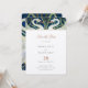 Cette carte Save the Date incarne le romantisme intemporel de l'époque Art Déco, avec une paire de cygnes élégants sur fond de lustres bleu foncé et de motifs floraux opulents. Les cygnes sont illustrés sous une forme stylisée aux délicats accents de feuilles d'or, évoquant un sens de beauté et de grâce classique. L'utilisation de tons pastel dans le texte, jumelé à la palette marine et or, crée un air de sophistication et de luxe serein. L'invitation est décorée avec goût d'une façade sobre qui complète le design orné, parfait pour annoncer vos nouveautés avec une touche de glamour vintage.