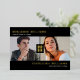 Invitations à la fête de remise de diplômes doubles avec un arrière - plan noir élégant qui peut être changé à n'importe quelle couleur, photos des deux diplômés, et un élégant modèle de célébration conjoint en feuille d'or réel qui est facile à personnaliser. REMARQUE : Le pétrole peut être changé en or argenté ou rose. Vous pouvez ajuster le libellé à l'arrière du grand invitation pour en faire un faire-part de graduation.