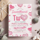 Notre invitation d'anniversaire deux douceurs est le moyen idéal pour inviter vos amis et votre famille à votre fête. Le design présente un thème de bonbons, avec suffisamment d'espace pour tous les détails importants tels que la date, l'heure et le lieu de la fête. Parfait pour tout âge, sexe et thème de la fête, il est sûr d'impressionner vos invités et de les enthousiasmer pour la célébration.