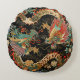 Cet oreiller de forme ronde est équipé de deux dragons de style asiatique entourés de fleurs sur un arrière - plan noir.