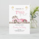 Préparez-vous à une fête d'anniversaire enivrante avec notre invitation à thème rose "DEUX Fêtes". Montrant une voiture de course rose épurée et un drapeau à damiers flottant, cette carte est parfaite pour une fille qui aime la vitesse. Avec des polices roses ludiques et des détails personnalisables, il est sûr de commencer une fête d'anniversaire inoubliable, remplie d'adrénaline.