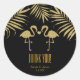 Deux flamants roses aiment les autocollants de faveur noir et or. Articles assortis disponibles.