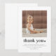 Une carte de remerciement d'anniversaire 2 ans moderne et douce avec votre propre photo et le mot 'merci' avec un cœur à côté. Vous pouvez également modifier toutes les couleurs et styles de texte, ainsi que la couleur du cœur si vous le souhaitez. Cliquez simplement sur le bouton 'Personnaliser' -> 'Modifier à l'aide de l'outil de conception'.