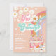 Célébrez le jour spécial de vos petits avec cette invitation anniversaire rétro "Two Groovy" qui présente un fond pêche, des marguerites joyeuses, un arc-en-ciel pastel, des papillons et un van flower-power. Parfaite pour une fête d'anniversaire de 2 ans, cette conception ludique capture l'esprit de paix, d'amour et de plaisir. Avec des polices fantaisistes et des couleurs vives, elle donne le ton pour une célébration joyeuse. Personnalisez facilement avec les détails de votre fête et créez un souvenir que vos invités adoreront.