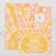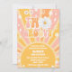 Célébrez la journée spéciale de vos petits avec cette invitation d'anniversaire rétro vibrante, dotée de rayons roses, orange et jaunes audacieux, de signes de paix ludiques, de fleurs et d'étoiles. Le design fantaisiste "TWO GROOVY" avec un accent de marguerite ajoute une touche amusante et nostalgique parfaite pour une fête d'anniversaire de 2 ans. Cette invitation personnalisable est idéale pour les parents qui cherchent une carte unique et accrocheuse qui capture l'esprit de paix, d'amour et de plaisir. Personnalisez-la avec le nom de votre enfant, les détails de la fête et les informations de RSVP pour créer un souvenir mémorable que vos invités adoreront.