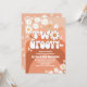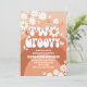 Célébrez la journée spéciale de vos petits avec cette invitation d'anniversaire "Two Groovy" inspirée des années rétro ! Avec des tons chauds orange et marron, des arches arc-en-ciel ludiques, des marguerites, des signes de paix et une fleur souriante, ce design capture l'esprit amusant et insouciant des années 1970. Parfait pour une deuxième fête d'anniversaire, il donne le ton pour la paix, l'amour et la joie tout en donnant aux invités tous les détails dont ils ont besoin. Un choix élégant et unique pour les parents qui prévoient une célébration sur le thème groovy.