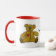 Cette tasse comporte deux nounours. Un avec les yeux bleus, Un avec les yeux bruns. Le texte au milieu peut être supprimé ou modifié (mettre un nom?) si vous voulez. fait cette tasse pour Teddy Bear Day. Mais les nounours sont maintenant si populaires dans le monde que les dates varient et je n'ai pas mis de date spécifique sur cette tasse. Bien que je le montre sur une tasse rouge, vous pouvez acheter cette conception sur n'importe quelle tasse couleur, ainsi que d'autres articles de boisson offerts. Conçu par Sheila Cicchi, Brownielocks.com. Tous droits réservés.