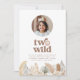 Cette invitation d'anniversaire présente un visage de lion d'aquarelle douce avec l'expression "deux sauvages", accentué par des feuilles de jungle neutre le long du fond. Vous pouvez ajouter votre propre photo dans la forme cercle. Parfait pour un safari autour du deuxième anniversaire !