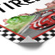 Voiture de course vintage fête d'anniversaire, deux pneus de rechange rapide Poster
