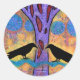 Un autocollant de corbeau blanc et coloré intitulé "Two Ravens Sit & Relect on Life". Design par Lindy Gaskill de Art par Lindy.