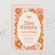 Ce cool "Deux super" rétro invitation design pour 2ème anniversaire dispose d'un motif de fleurs sauvages fantaisistes, dans une palette de couleurs bohème de terre cuite, beige, rose et jaune.