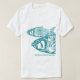 Deux graphiques bleus de poissons avec le texte à customiser : C'est un bloc de linoléum découpant, (un bloc de lino coupé), comme une gravure sur bois, d'un poisson qui est alors encré et imprimé sur le papier.