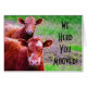Une paire de vaches brunes curieuses se tenant ensemble sur un pâturage, filtre numérique s'est appliquée pour ressembler à une peinture à l'huile avec la texture de toile et pour balayer le détail de course. Cowgratulate la personne heureuse sur une nouvelle maison avec cette carte folle de vache adorable.