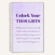Bienvenue à la nouvelle année avec un nouveau départ par l'écriture. Ce Carnet violet léger, intitulé "Unlock Your Thoughts", est conçu pour inspirer créativité, réflexion et expression de soi. La couverture frontale offre des instructions simples sur ce qu'il faut écrire, tandis que la couverture arrière met en évidence les avantages puissants de la journalisation. Un cadeau significatif et réfléchi pour encourager les débutants - ou tous ceux qui vous intéressent - à commencer l'année avec une belle nouvelle habitude.