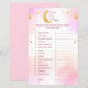 Fiche de jeu pour baby shower fille rose amusant avec le thème "Over the Moon". Avec le jeu de baby shower classique "Guess the Price". Un jeu facile et amusant pour que les clients jouent au baby shower. Vous pouvez modifier ou personnaliser les directions et la liste des produits.