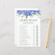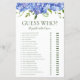 Cette belle hydrangée bleue Guess Who? nuptiale feuille de jeu de douche est élégant et charmant - parfait pour tout jardin, botanique, rustique, romantique, floral, formel ou vintage mariage. Son magnifique mélange d'hydrangées bleues multicolores gracieuses et de verdure feutrée est fleurie, délicate et belle. Ce jeu amusant et facile est sûr d'apporter beaucoup de rire à toute douche nuptiale! Vous serez surpris du nombre de réponses que les gens sauront. En quelques secondes, vous pouvez voir comment votre feuille de jeu va apparaître. Sélectionnez simplement Personnaliser ce Modèle et tapez les noms de la mariée et du marié.
