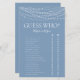 Cette belle lumière bleue poussiéreuse LGBTQ Guess Who? nuptiale feuille de jeu de douche est simple et charmant - parfait pour toute douche célébrant 2 mariées. Ce jeu amusant et facile est sûr d'apporter beaucoup de rire à n'importe quel wedding shower! Donnez simplement un drap à chaque invité (n'oubliez pas les stylos) et laissez le plaisir commencer! Vous serez étonné du nombre de choses que les gens connaissent sur les épouses. En quelques secondes, vous pouvez voir comment votre feuille de jeu va apparaître. Sélectionnez Personnalisez ce Modèle et entrez les noms des épouses.