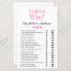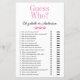 Ce joli jeu de douche moderne Guess Who? nuptiale est parfait pour toute douche. Ces jeux amusants et faciles vous apporteront de nombreux rires dans votre douche nuptiale. Donnez simplement un drap à chaque invité (n'oubliez pas les stylos) et laissez le plaisir commencer! Vous serez surpris de la façon dont vos invités commencent à se mélanger et à apprendre à se connaître et combien de choses les gens connaissent sur la mariée et le marié. Pour faire de ce jeu votre propre sélectionnez Personnalisez ce modèle et tapez le nom de la mariée et le nom du marié.