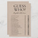 Cette belle feuille rustique Guess Who? nuptiale de douche de jeu est simple et charmant - parfait pour toute douche. Ce jeu amusant et facile est sûr d'apporter beaucoup de rire à toute douche nuptiale. Donnez simplement un drap à chaque invité (n'oubliez pas les stylos) et laissez le plaisir commencer! Vous serez surpris de voir combien de choses différentes les gens connaissent sur la mariée et le marié. Pour faire de ce jeu votre propre sélectionnez Personnalisez ce modèle et tapez le nom de la mariée et le nom du marié.