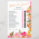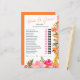 Faites de votre douche nuptiale un plaisir supplémentaire avec cette carte de jeu "Bride or Groom Guess Who?" avec un design floral aquarelle dynamique. Avec un mélange de questions ludiques et légères comme "Qui a fait le premier pas?" et "Qui est le meilleur danseur?", les invités peuvent faire le tour de leurs réponses et voir qui connaît le mieux le couple. Les touches florales, rose, orange et jaune peintes à la main apportent une touche lumineuse et vivante, idéale pour les douches à thème boho ou floral. Un grand brise-glace et gardez le saké pour les futurs mariés !