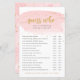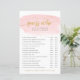 Devinez Who rose aquarelle et or jeu de baby shower. Vous pouvez personnaliser ce jeu avec le nom et la date de douche de l'invité d'honneur ainsi que 15 déclarations/questions. Vos invités de baby shower devineront qui a dit chaque déclaration...maman ou papa.