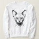 Devon Rex Cat Sketch Men's Sweatshirt." A detailed monochrome portrait of a large-eared Devon Rex. This artistic drawing is perfect for cat lovers and owners of this unique, curly-haired cat breed. Show your Devon Rex pride! A cozy men's white crewneck for casual comfort.