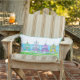 Mains dessinées Imaginary Beach Cottages Coussin Lumbar extérieur; avec cyan solide à l'arrière