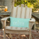 Ajoutez une sensation estivale à votre espace de vie extérieur avec ce coussin extérieur rayé fait dans un motif à rayures vert et aqua. Lire du texte blanc personnalisé se détendre et rester un peu, décore l'avant, du coussin. Personnalisez le texte pour lire ce que vous voulez.