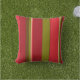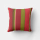 Cette coussin décorative extérieure présente un motif abstrait rétro coloré aux rayures géométriques audacieuses dans les couleurs rouge, orange, marron, vert olive, noir et bronzé.