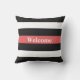 Carreau extérieur bienvenu rayé blanc et rouge noir. L'accueil apparaît sur une rayure rouge dans les lettres blanches.