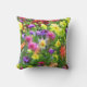 Ce coussin artistique est couvert de masses des fleurs dans chaque couleur de l'arc-en-ciel. Appréciez le motif abstrait floral de jaune, d'orange, de rose, de rouge, de bleu, pourpre et blanc réglé sur un arrière - plan de feuille vert. En regardant ceci, un est rappelé une peinture impressionniste française.