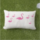 Ces amusement et coussin extérieur tropical est décoré des flamants roses lumineux sur un arrière - plan blanc lumineux, lui faisant l'accessoire parfait d'été pour la maison de plage, la maison de piscine, le bateau, le cottage, le patio, la plate-forme ou l'espace piscine. Ce coussin coordonne parfaitement avec plusieurs autres coussins extérieurs dans la collection extérieure de coussin de PrettyFancyPillows.