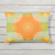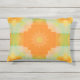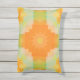 Coussin avec un motif moderne géométrique dans une chaude orange ensoleillée, jaune et vert frais. Le texte monogramme est facultatif.