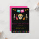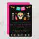 Día de los Muertos Party Invitation. Invite your guests to a vibrant Día de los Muertos celebration with this festive party invitation! Featuring a colorful sugar skull, dancing skeletons, and papel picado on a bold black background, this design is full of life. Honor your ancestors and celebrate with friends and family using this beautiful and traditional Day of the Dead fiesta invitation. The template is fully editable, so you can easily personalize all the details for your special event.